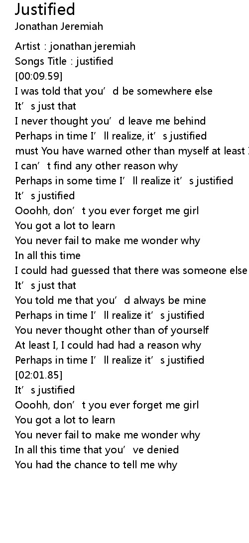 | [01:55.91] | Perhaps in time I' ll realize it' s justified |