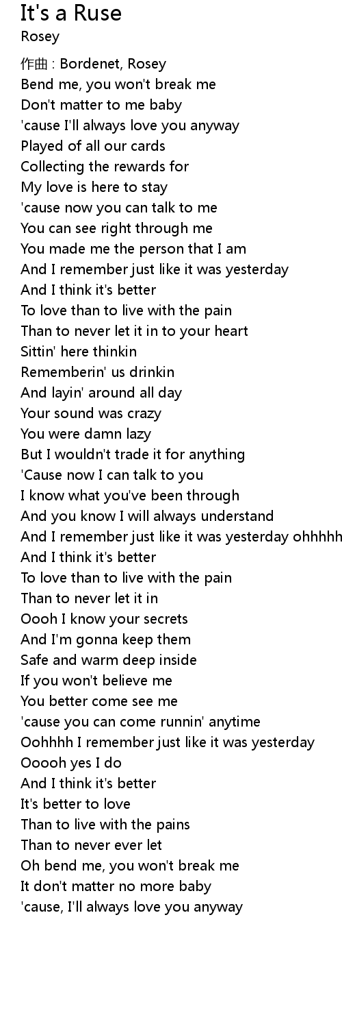 | Oh bend me, you won' t break me | |