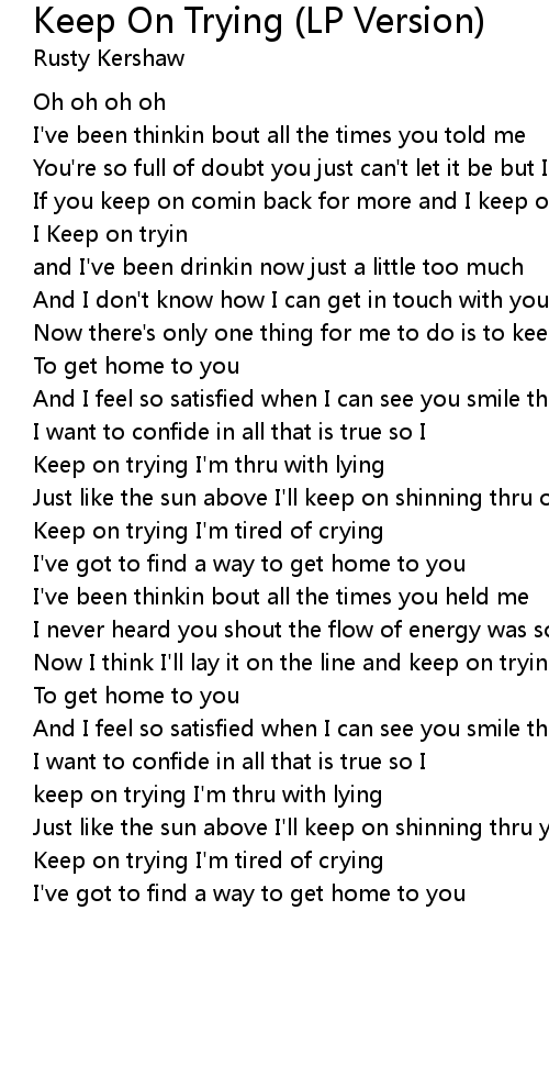 Now there's only one thing for me to do is to keep on tryin |