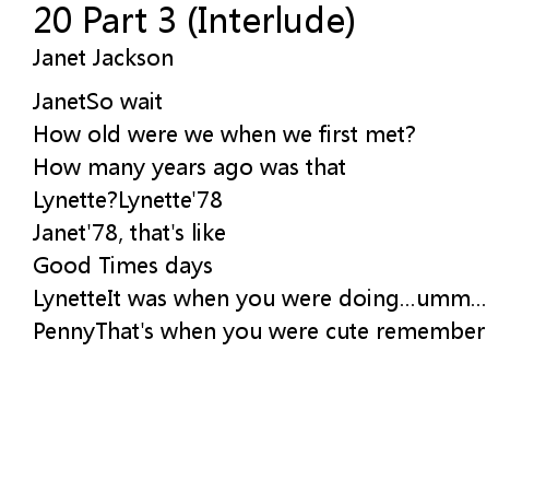 | Song | 20 Part 3 (Interlude) |