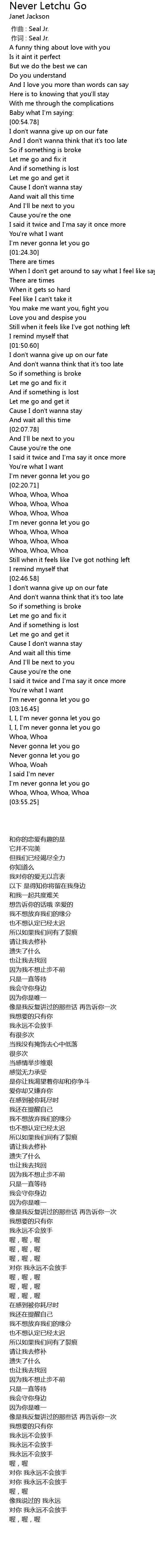 | [03:34.82] | Never gonna let you go |