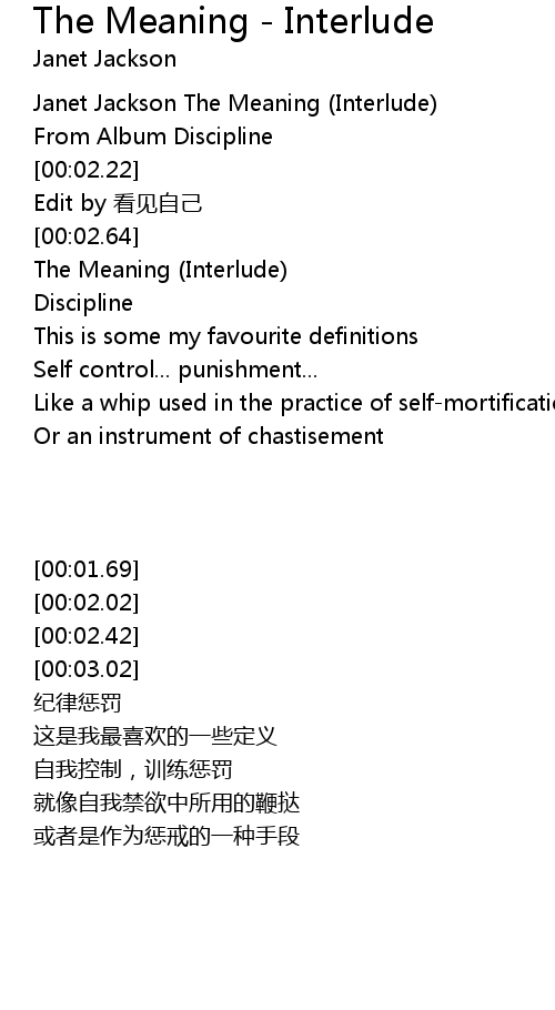 | [00:01.69] | Janet Jackson The Meaning (Interlude) |