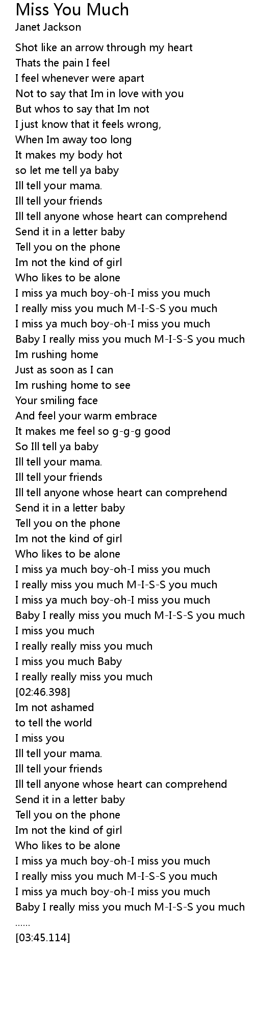 [01:27.533] Baby I really miss you much M-I-S-S you much