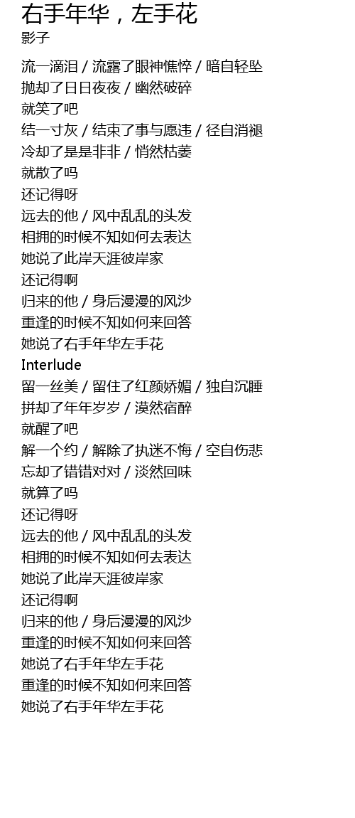 | tā shuō le yòu shǒu nián huá zuǒ shǒu huā |