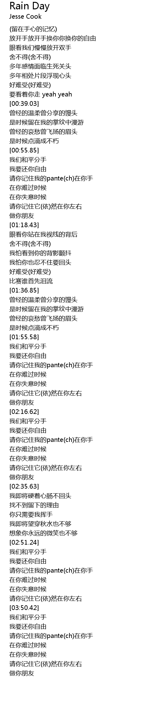 | [03:38.68] | 请你记住我的pante(ch)在你手 |