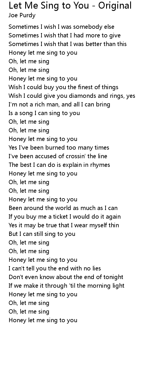 Let Me Sing to You - Original Lyrics