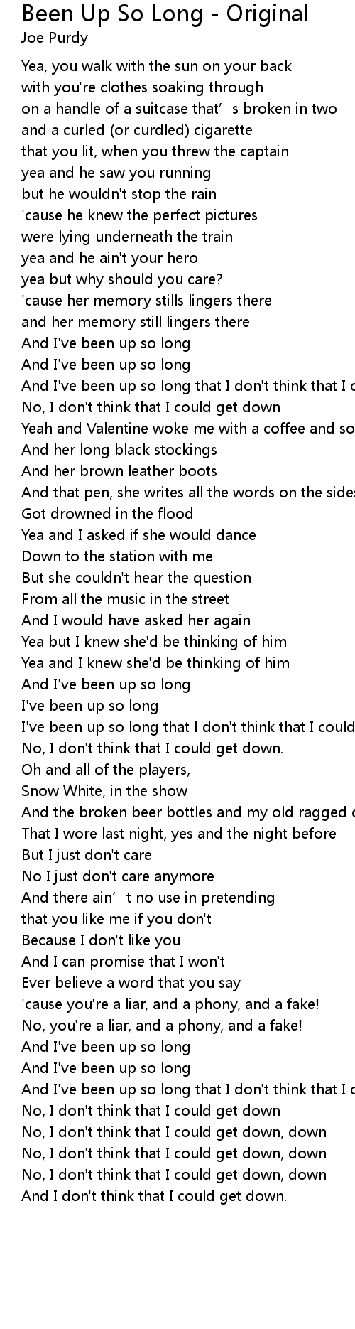 | And I've been up so long | |