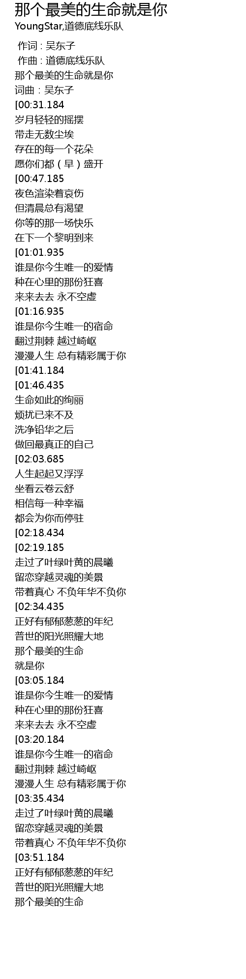 | [00:09.915] | nà gè zuì měi dí shēng mìng jiù shì nǐ |