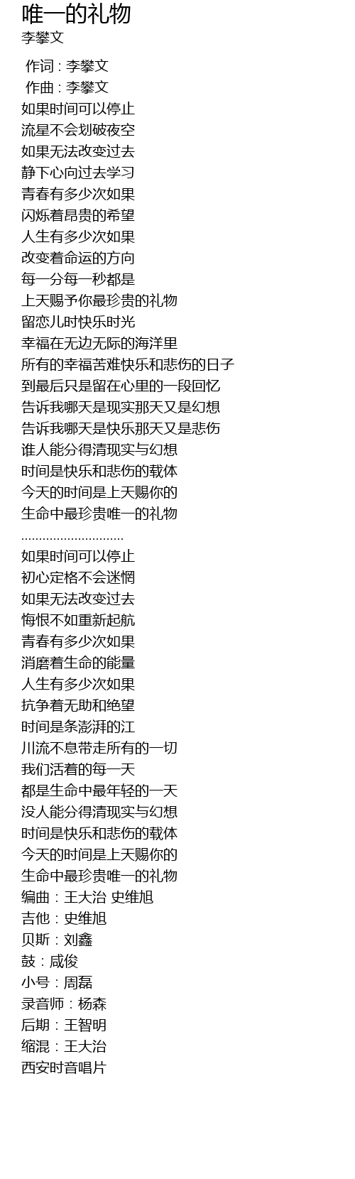 | [04:20.508] | 生命中最珍贵唯一的礼物 |