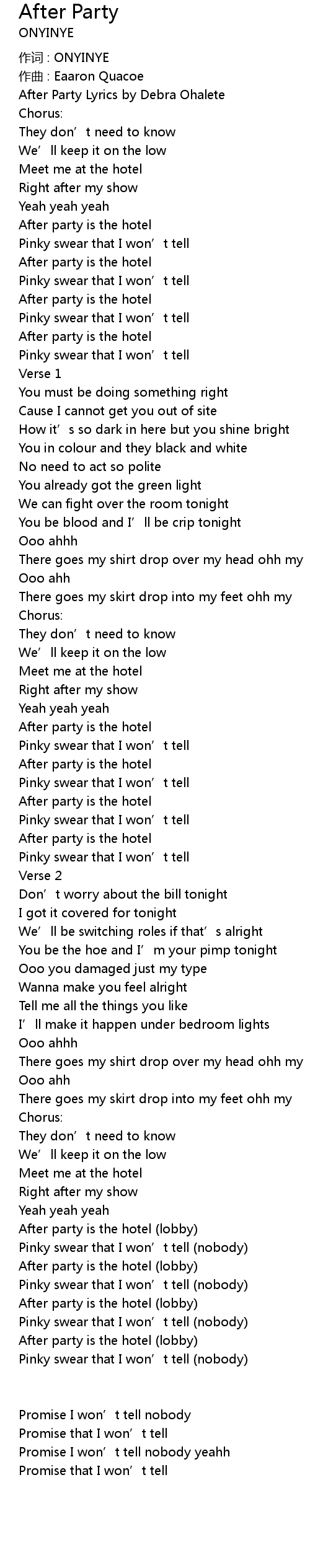 | After Party Lyrics by Debra Ohalete | |