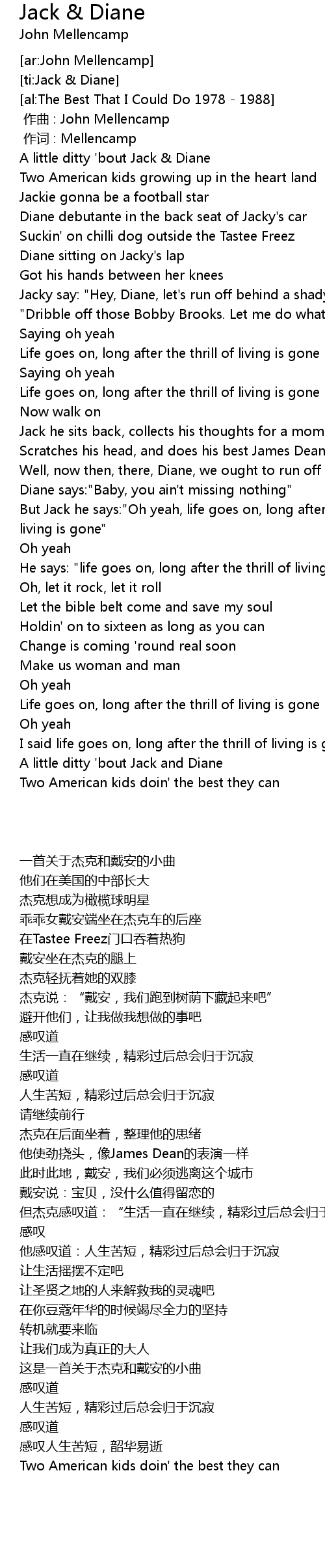 | [03:01.90] | A little ditty ' bout Jack and Diane |