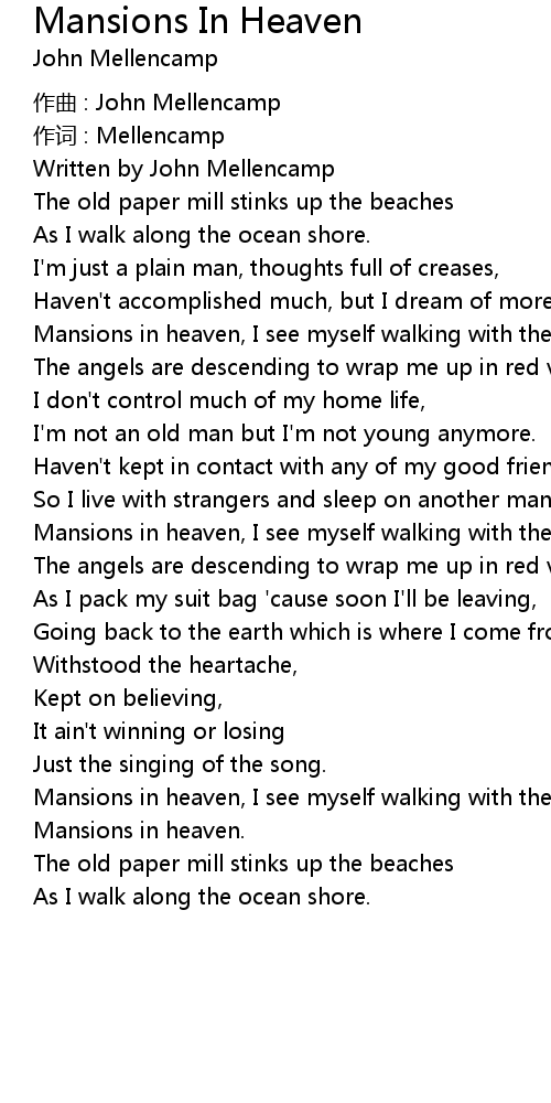 | Song | Mansions In Heaven |