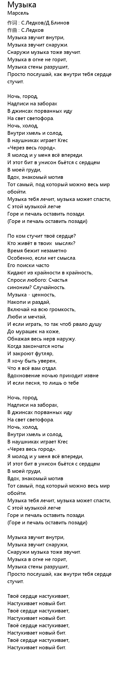 Музыка  Lyrics