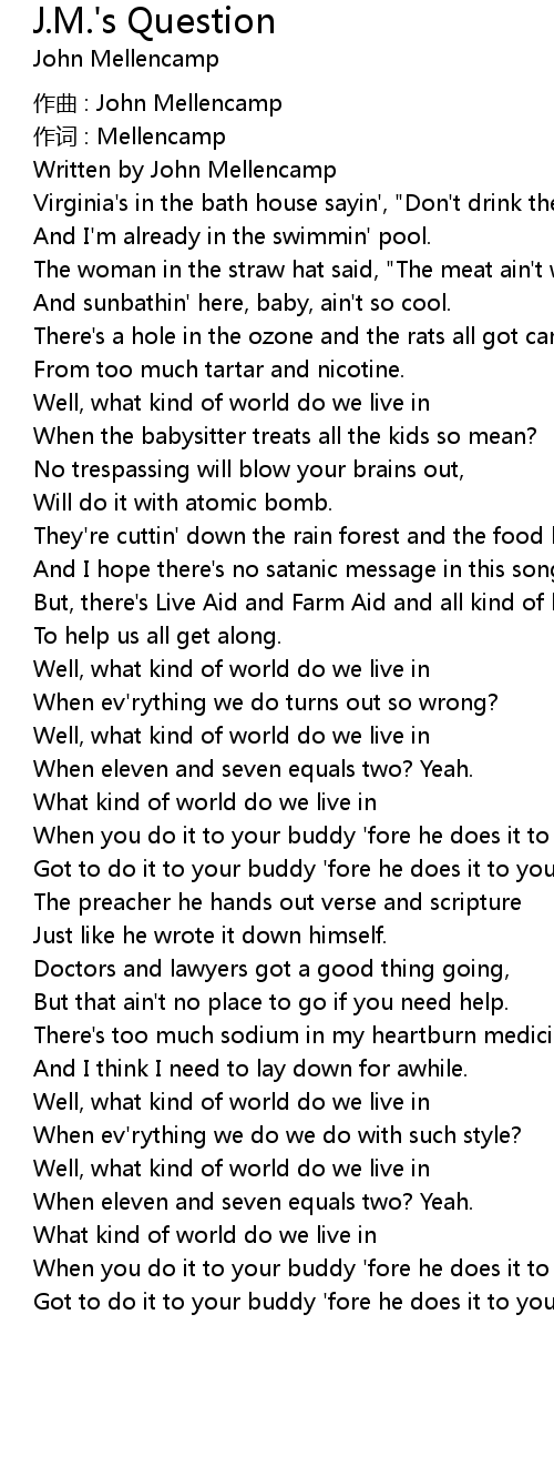 | Song | J.M.'s Question |