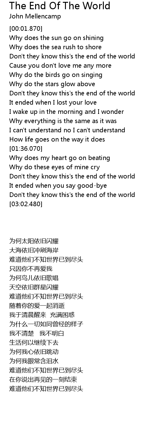 Don't they know this's the end of the world |