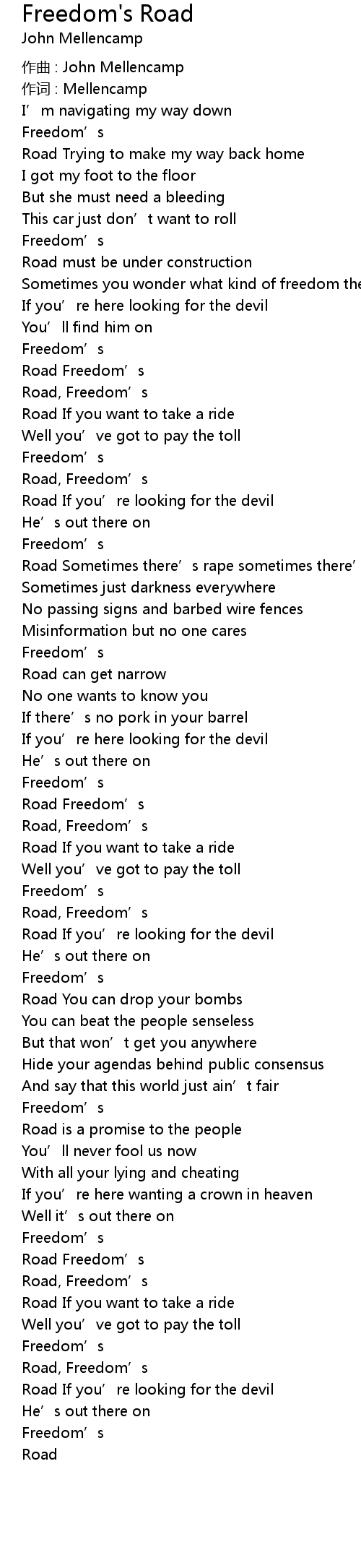 | Sometimes you wonder what kind of freedom they' re talking | |