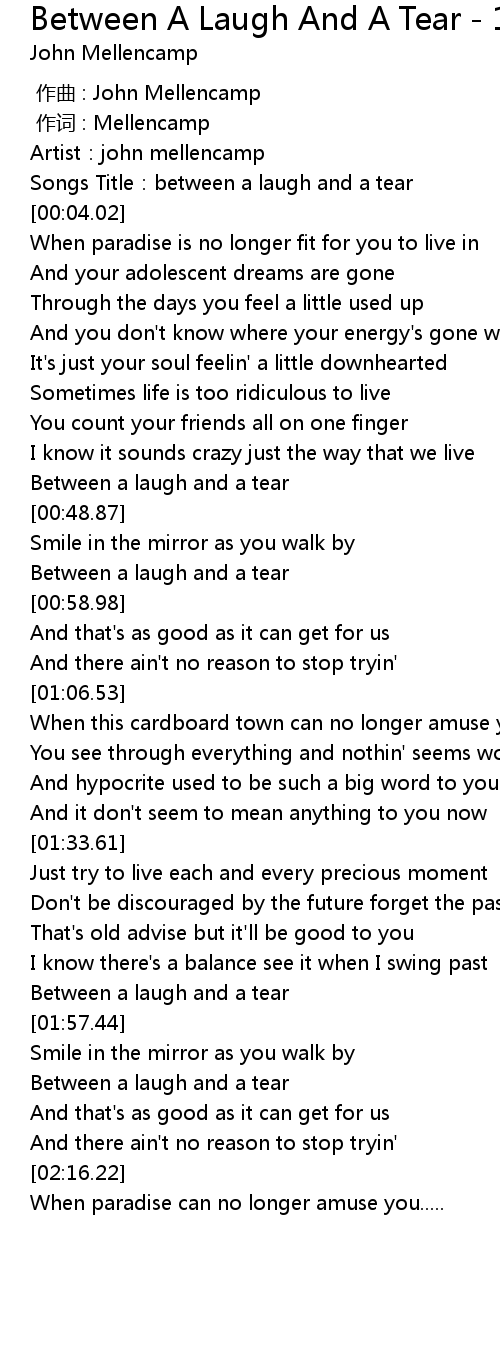 | [00:01.52] | Songs Title: between a laugh and a tear |