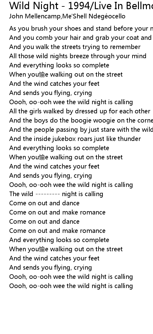 | Song | Wild Night - 1994/Live In Bellmont Mall Studios |