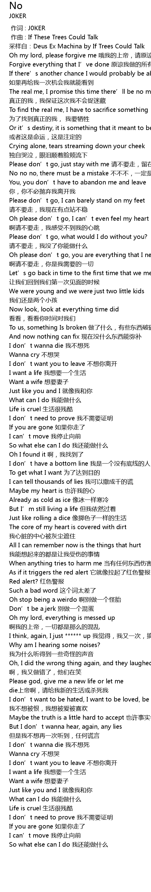 | [00:51.478] | Please don' t go, what would I do without you? qǐng bú yào zǒu, wǒ méi le nǐ néng zuò shí mǒ |