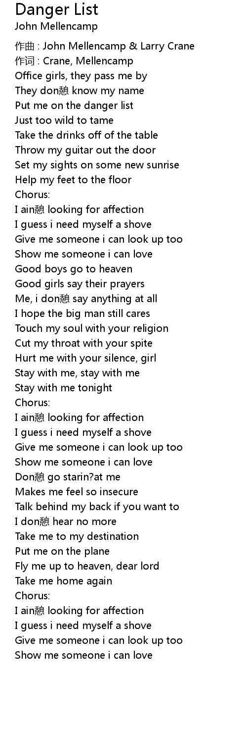 | 作词 : Crane, Mellencamp | |
