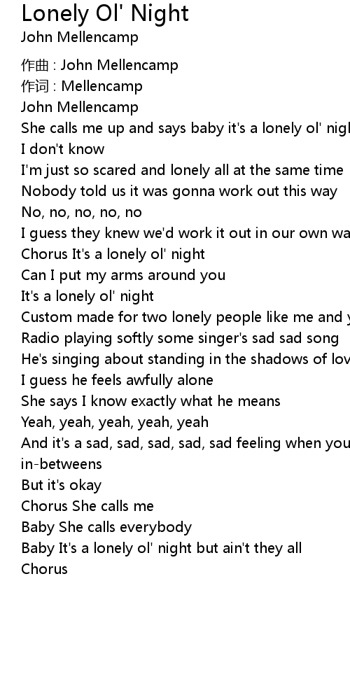 | Baby It' s a lonely ol' night but ain' t they all | |