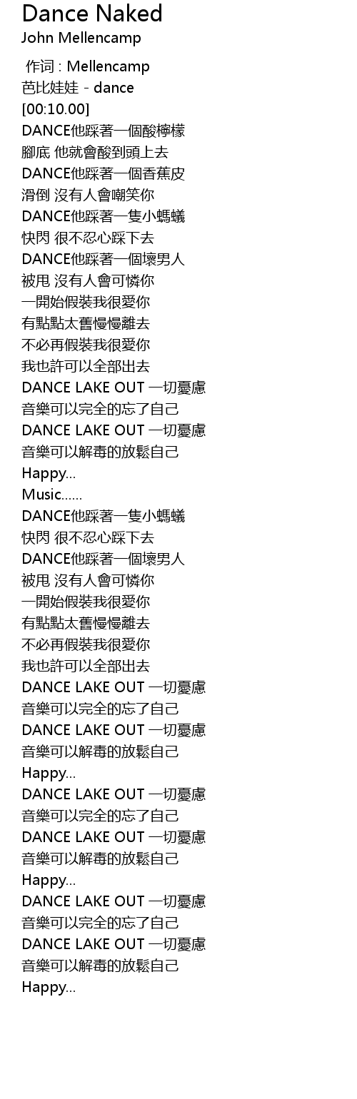 | [02:45.880] | DANCE LAKE OUT 一切憂慮 |