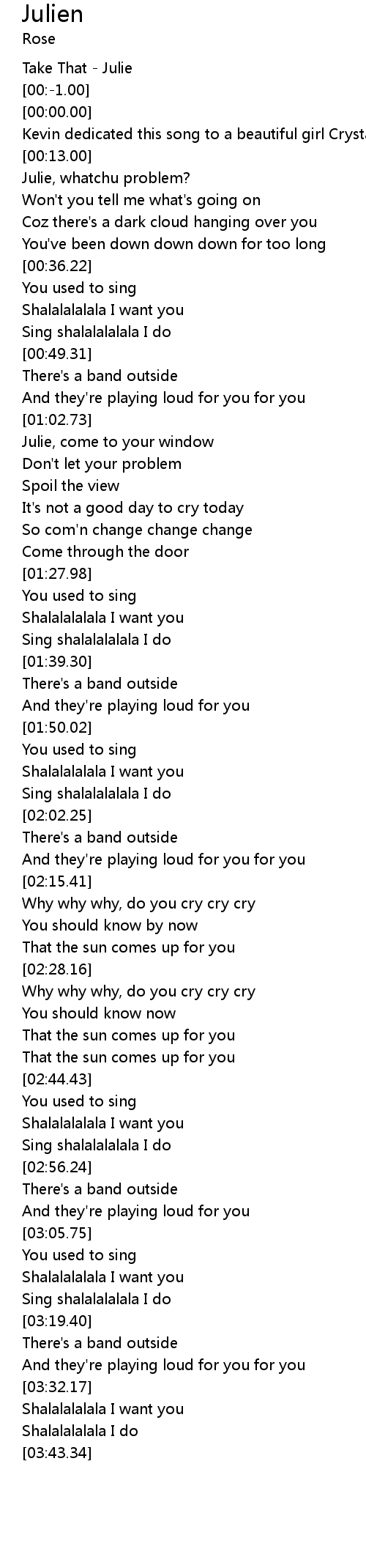 | [00:-2.00] | Take That - Julie |