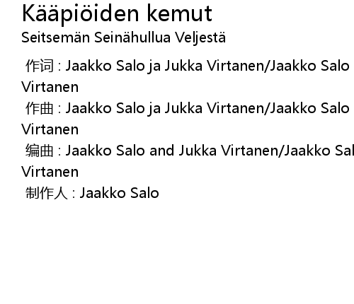 | [00:00.000] | 编曲 : Jaakko Salo and Jukka Virtanen/Jaakko Salo ja Jukka Virtanen |
