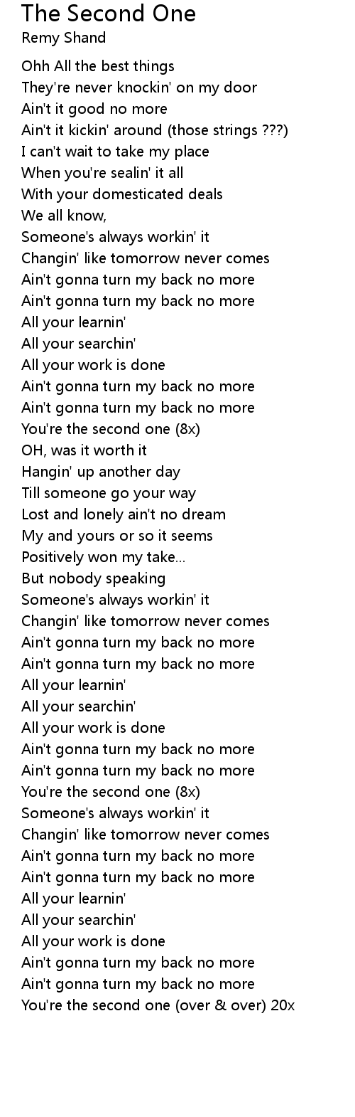 You're the second one (over & over) 20x |
