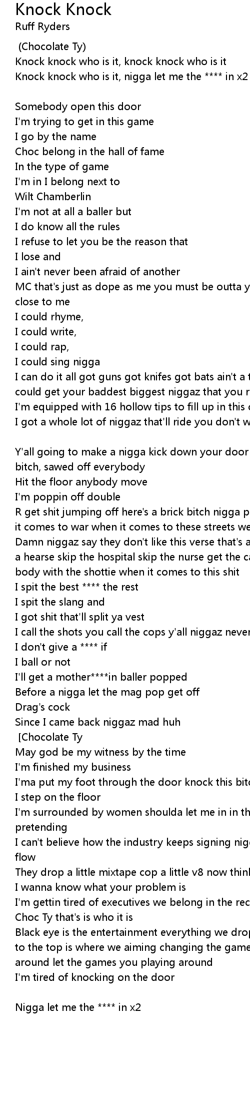 Knock knock who is it, nigga let me the **** in x2 |