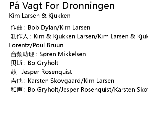 | [00:00.000] | 制作人 : Kim & Kjukken Larsen/Kim Larsen & Kjukken/Max Lorentz/Poul Bruun |