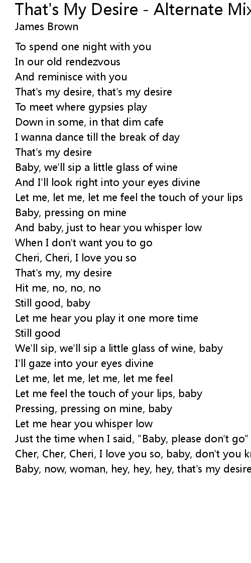 Baby, now, woman, hey, hey, hey, that's my desire |
