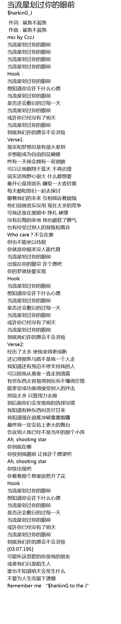 | [00:19.949] | dāng liú xīng huá guò nǐ de yǎn qián |