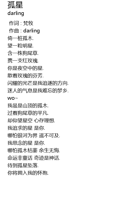 | [00:33.945] | nǐ shì yè kōng zhōng de xīng. |