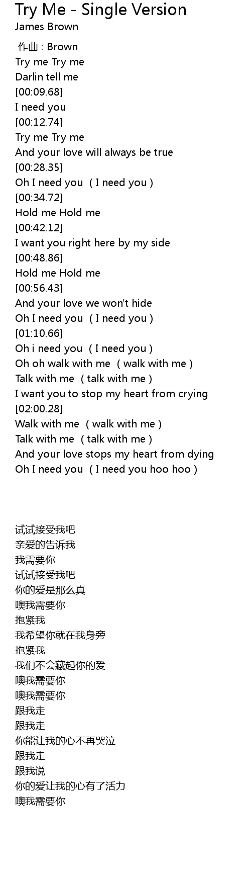 | [02:14.44] | Oh I need you (I need you hoo hoo) |