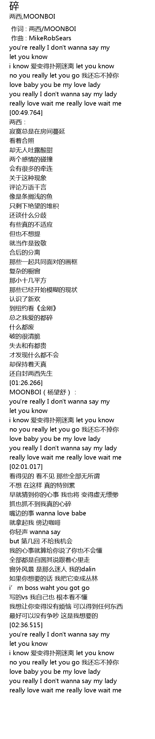 | [02:15.516] | nǐ qīng shēng wanna say |