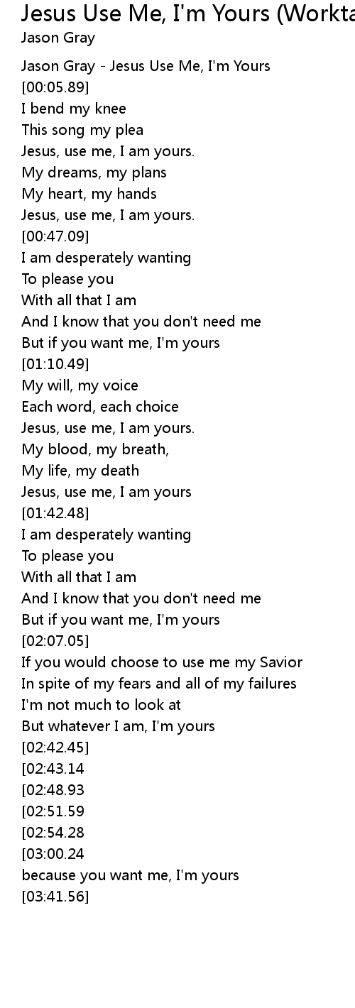 [00:01.12] Jason Gray - Jesus Use Me, I'm Yours