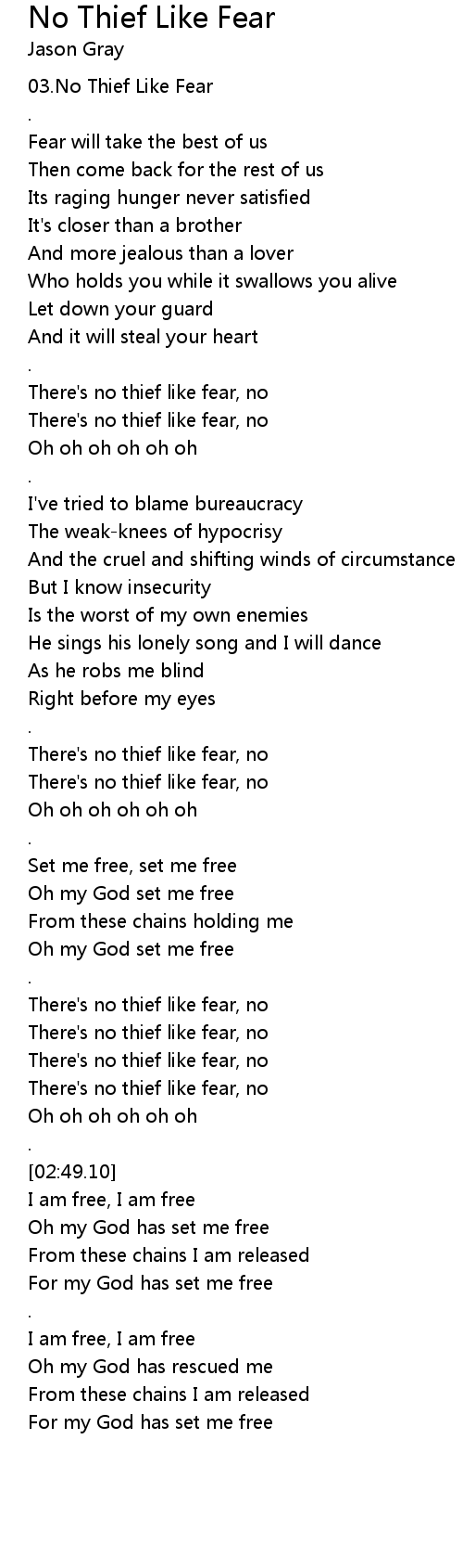 There's no thief like fear, no |
