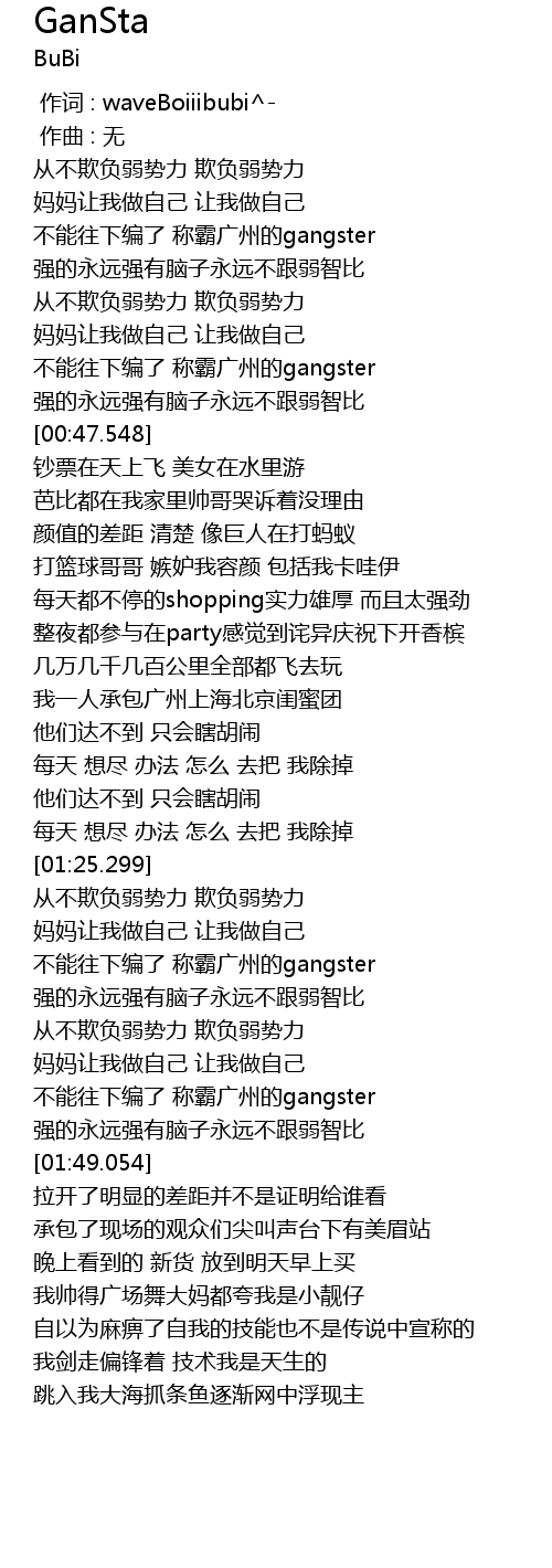 | [01:44.553] | bu neng wang xia bian le cheng ba guang zhou de gangster |