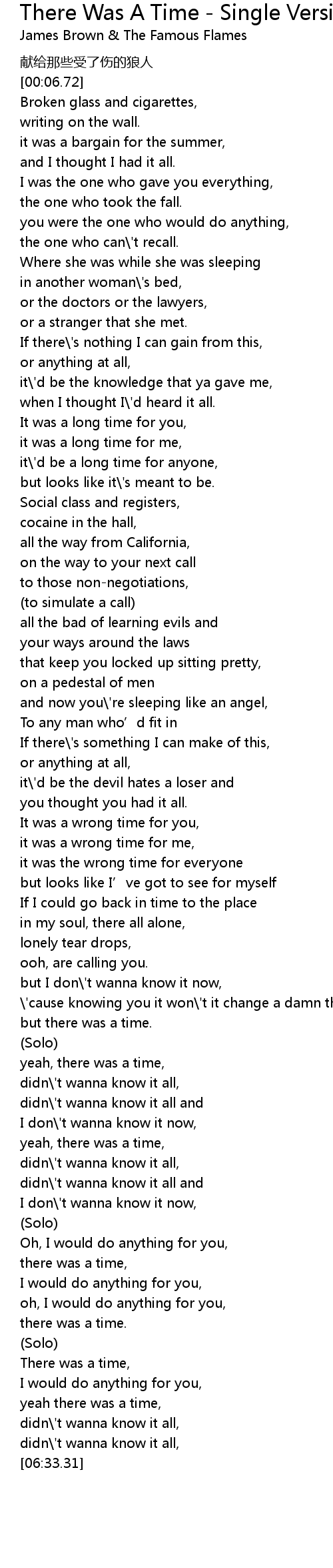 | [02:22.54] | \'cause knowing you it won\'t it change a damn thing. |