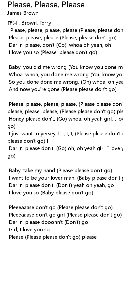 | Please, please, please, please, (Please please don't go) please, please, please, please, please, (Please please don't go) please | |