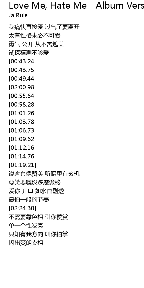| [02:02.01][00:55.64] | I just wanna be me love me hate me |