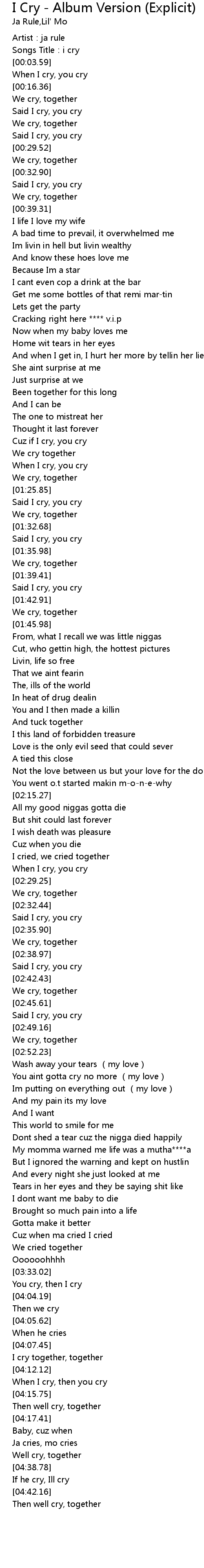 | [01:33.24] | Said I cry, you cry |