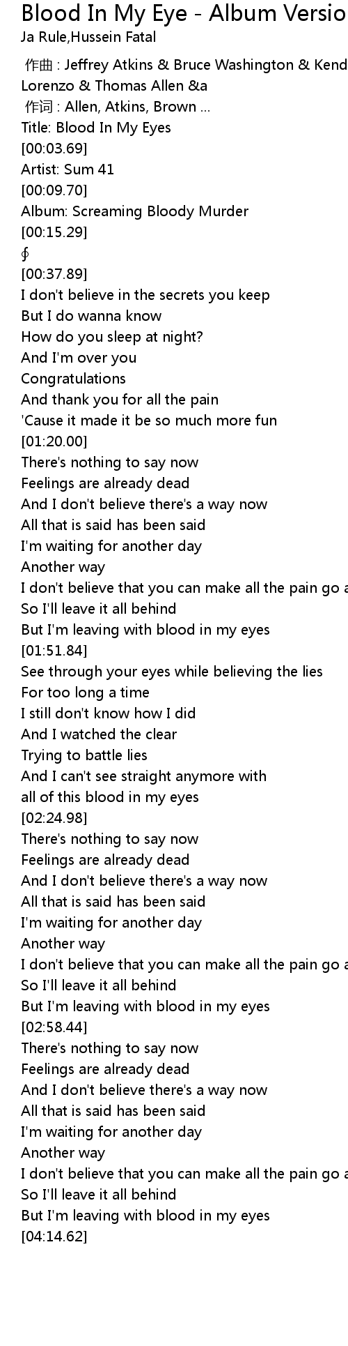 | [02:53.91] | But I'm leaving with blood in my eyes |