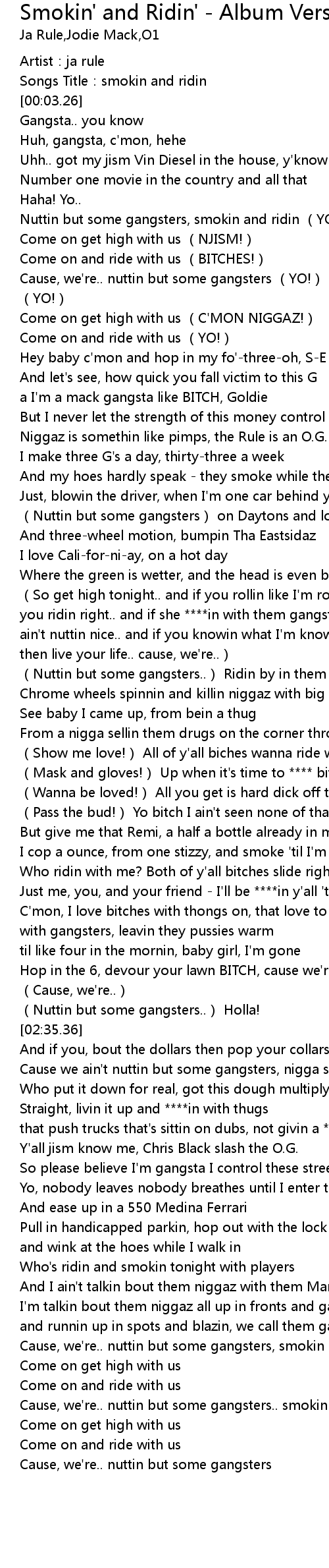 | [00:22.48] | Nuttin but some gangsters, smokin and ridin YO! |
