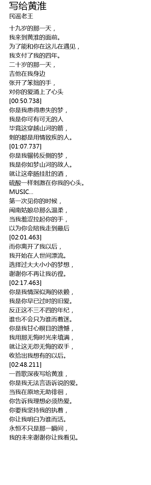 | [02:51.461] | 一首歌深夜写给黄淮, |