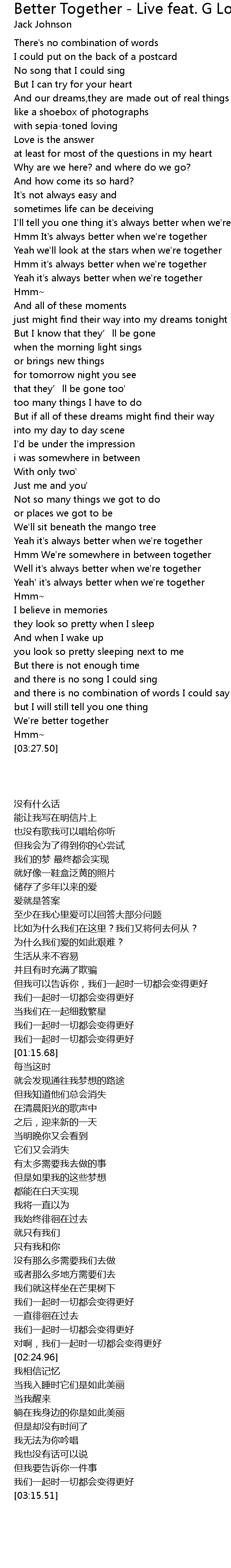 | [00:59.28] | Hmm It' s always better when we' re together |