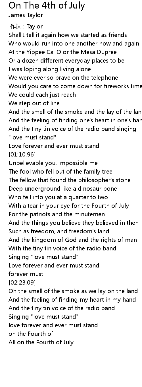 | [01:36.96] | With a tear in your eye for the Fourth of July |