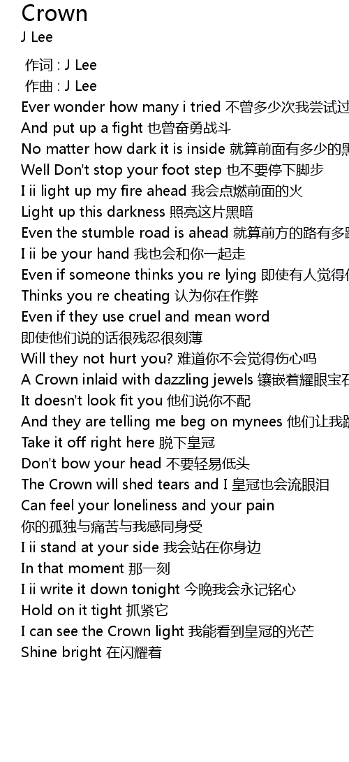 | [00:47.64] | A Crown inlaid with dazzling jewels 镶嵌着耀眼宝石的皇冠 |