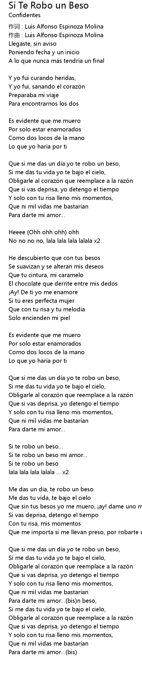 | 作词 : Luis Alfonso Espinoza Molina | |